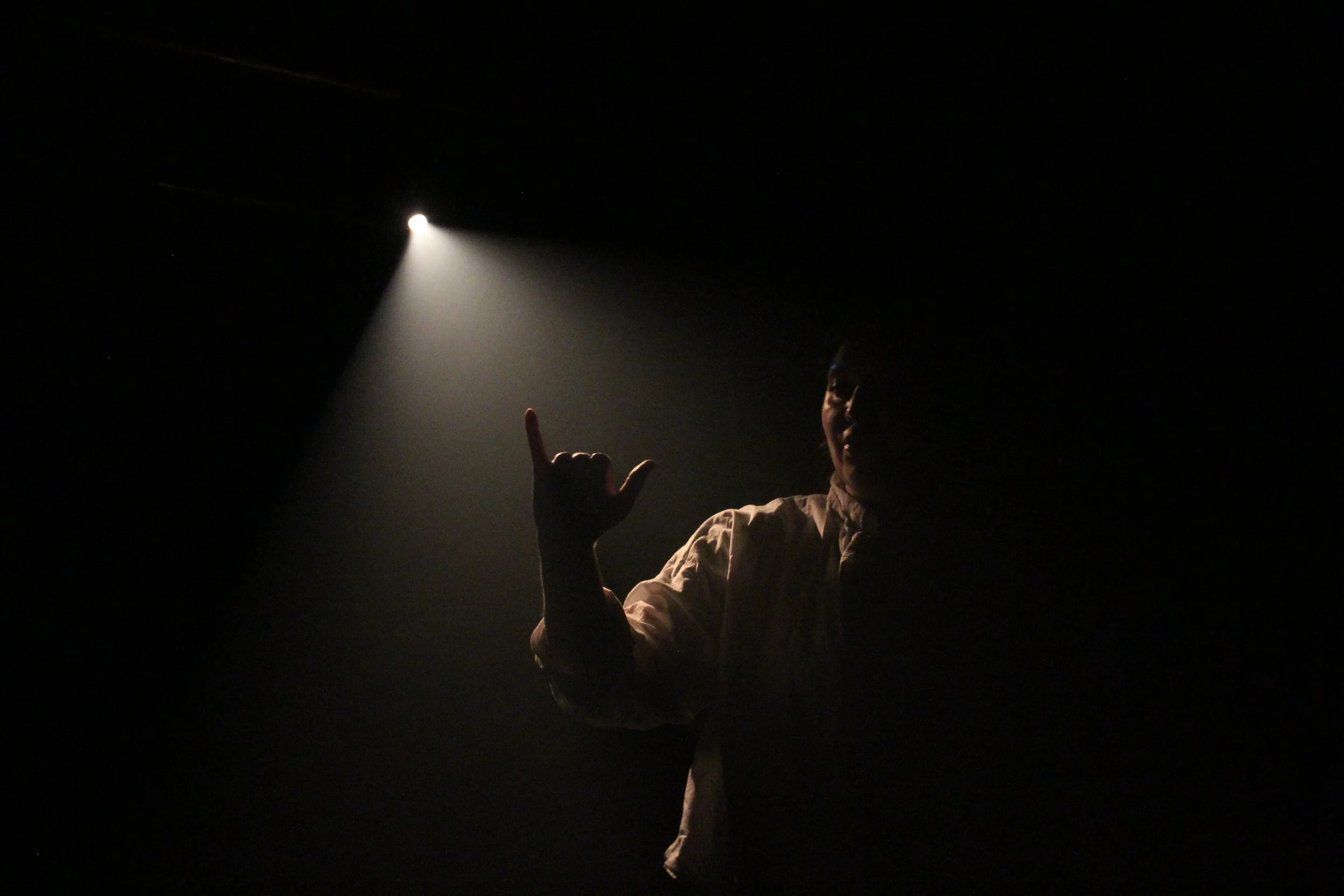 We got off to a slow start with physical, in-person rehearsals, due to scheduling issues and illness. Our first meeting was on October 9th, and required us to scale back the structure of the show due to time constraints. We decided to explore the singular main character of the piece, Katurian. We adjusted our previous question to better reflect the new structure and goals: How do we show the effects of isolation on Katurian’s mind?